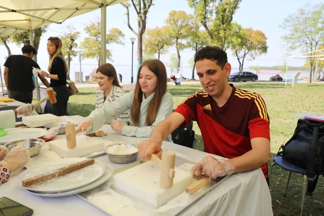 除了赏花、划龙舟,主办方还为留学生们精心设计了与“谷雨”节气相关的活动,体验了槐花焋糕制作、品谷雨茶、赏谷雨画、谷雨观鸟等。
