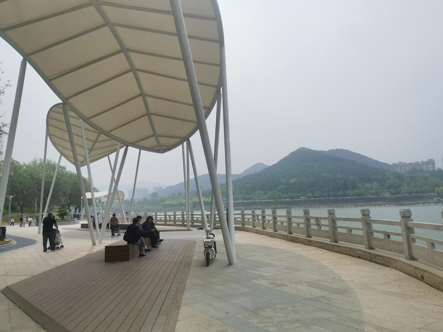 龙鼎滨水公园充分利用现有空间和环境,形成以南北水系为轴,以环水健康步道为纽带,集休闲观赏区、儿童活动区、亲子戏水区、人文展示区、湿地生态区为一体的“一轴一带五区”现代化滨水公园。公园设置了17处景观,建设过程中,充分利用滨水文化资源禀赋优势,内部挖潜、外部借力,以莲花、柳树等植物生长特性和品质象征,延伸出公园文化特色主题,将健身、观景、文化融为一体,切实提高了市民游园的体验感和幸福感。