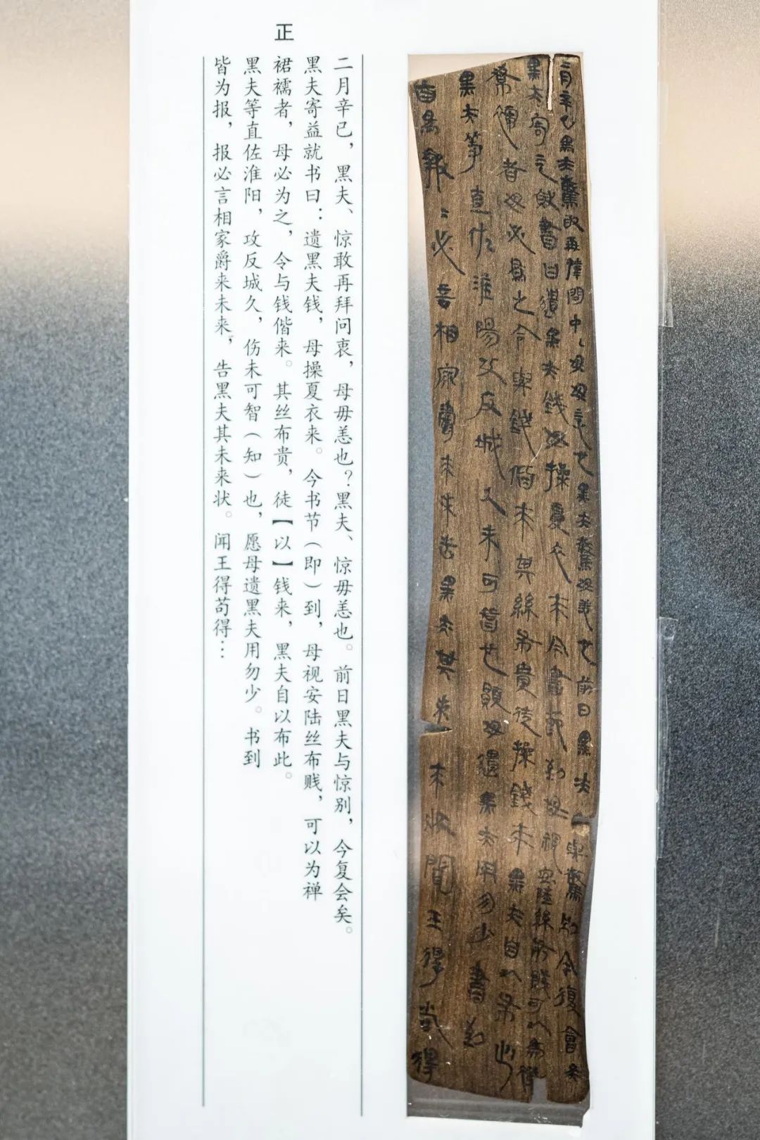 “黑夫等直佐淮阳,攻反城久,伤未可智(知)也……”公元前223年,淮阳之战一触即发,秦国发动的统一战争已接近尾声,而楚国是秦国最为强大的对手。“黑夫”和“惊”的家书仿佛一条穿越时空的隧道,唤起大秦雄风背后无数个普通士兵对于战事的未知,对于家和团圆的期盼。