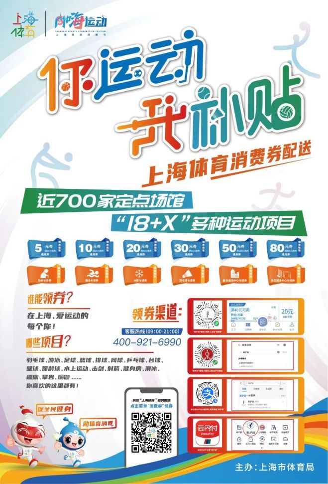此外,在杨浦等区开展市、区体育消费券联动,鼓励发放区级体育消费券,支持市民叠加使用市、区两级体育消费券,享受双重福利。