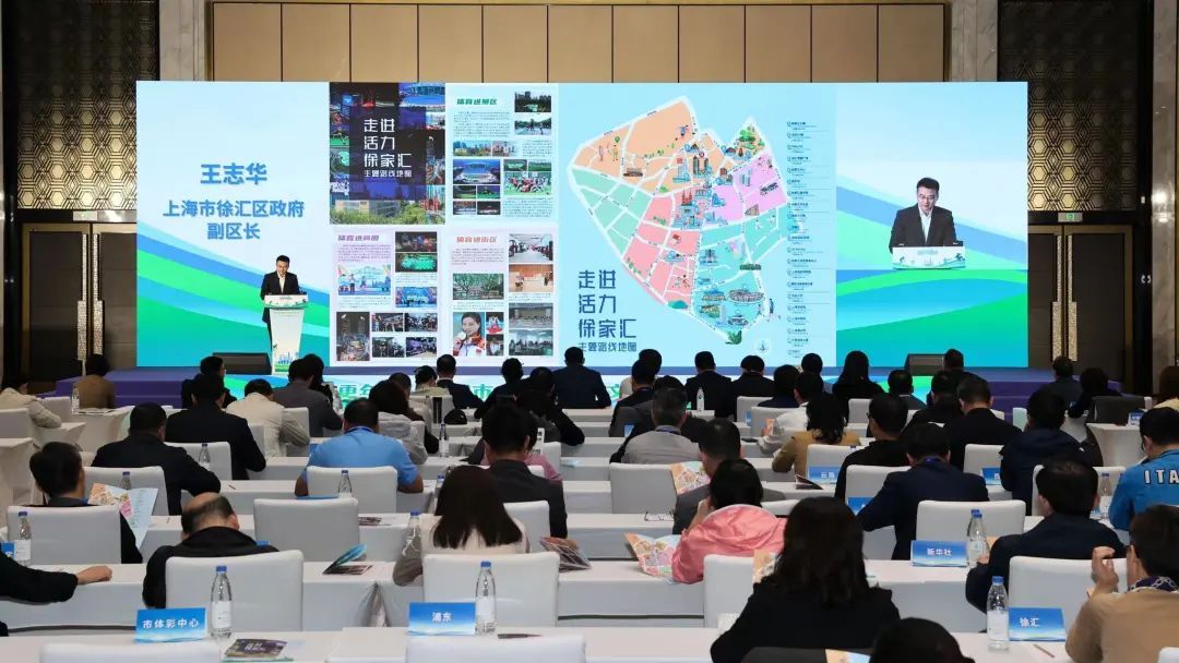 活动现场,徐汇区副区长王志华发布了“走进活力徐家汇”活动计划,精心设计的主题路线地图将体育元素巧妙融入景区、街区与商圈,生动展现徐汇区独特的城市活力与体育魅力。
