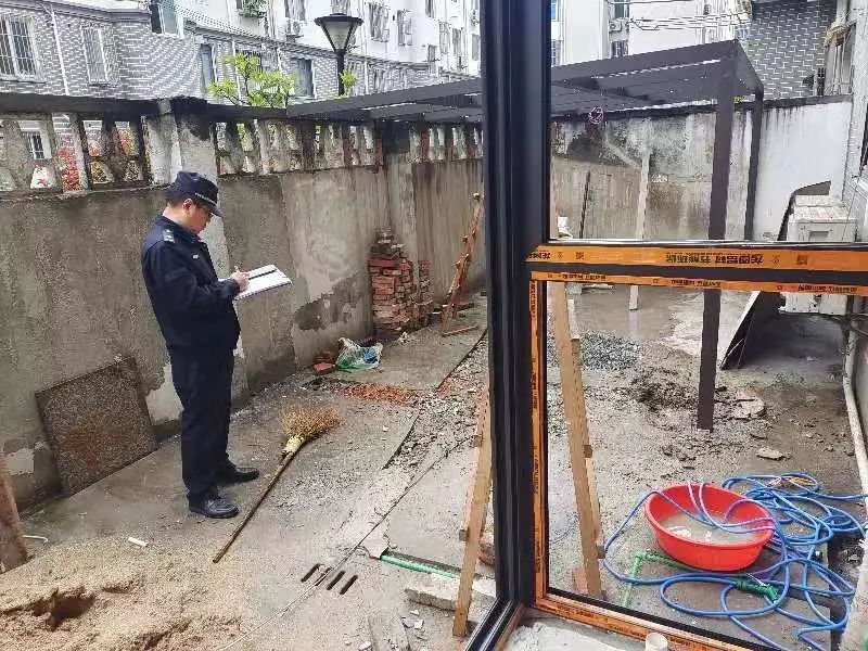 “天井内的搭建往往会给楼上和隔壁住户增加风险,雨天产生的雨水、噪音也会让周边居民不堪其扰,其侵占的是公共利益,也易引起安全隐患。”执法队迅速叫停施工,向业主说明此行为属于违章搭建,并责令其限期拆除。最终,业主按照要求拆除了正在搭建的阳光房。