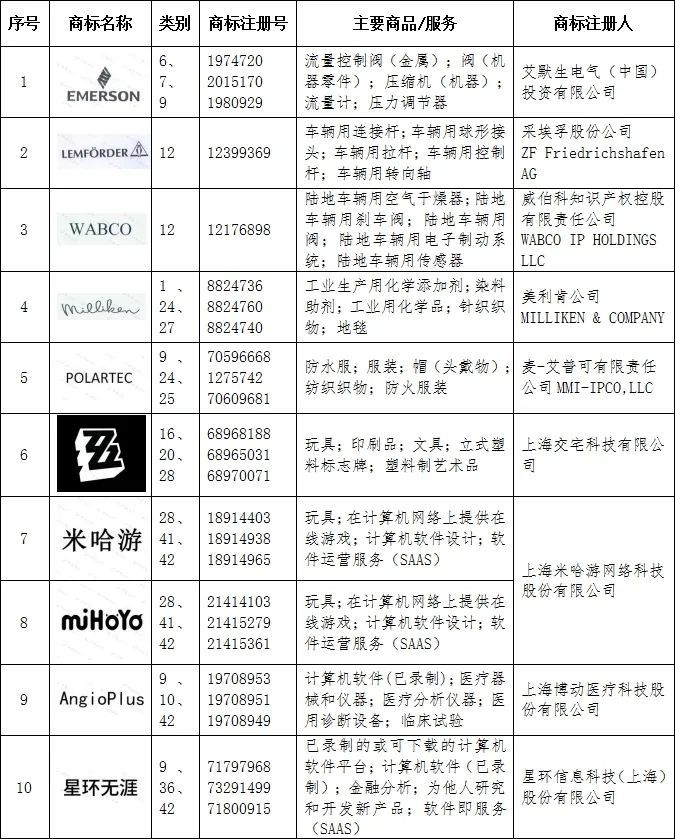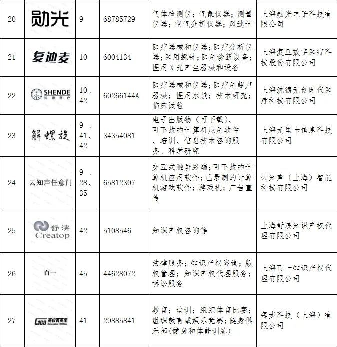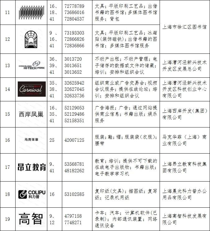 第四批徐汇区重点商标保护名录
