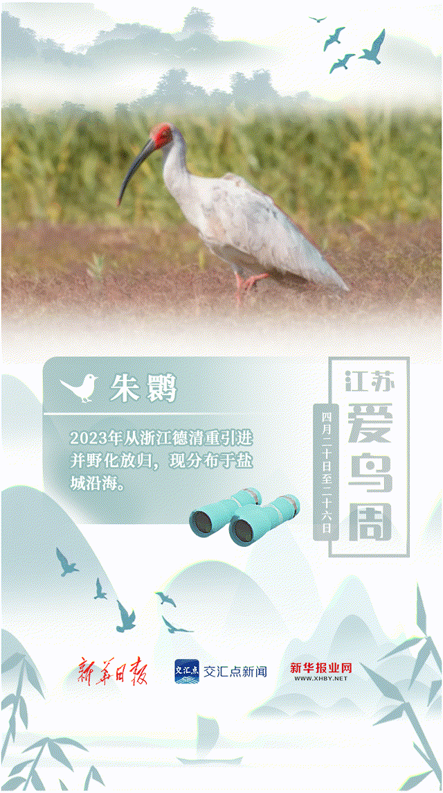 朱鹮又名朱鹭,俗称红鹤,体态优美,素有“东方宝石”之称。2023年10月,在植被丰茂的江苏盐城湿地珍禽国家级自然保护区实验区,20只来自浙江德清的“鸟中国宝”朱鹮振翅高飞,开启新的繁衍生息。这是朱鹮首次在中国东部沿海湿地野化放归,是重现朱鹮历史分布区,扩大朱鹮野生种群,填补朱鹮保护空白的重要阶段。