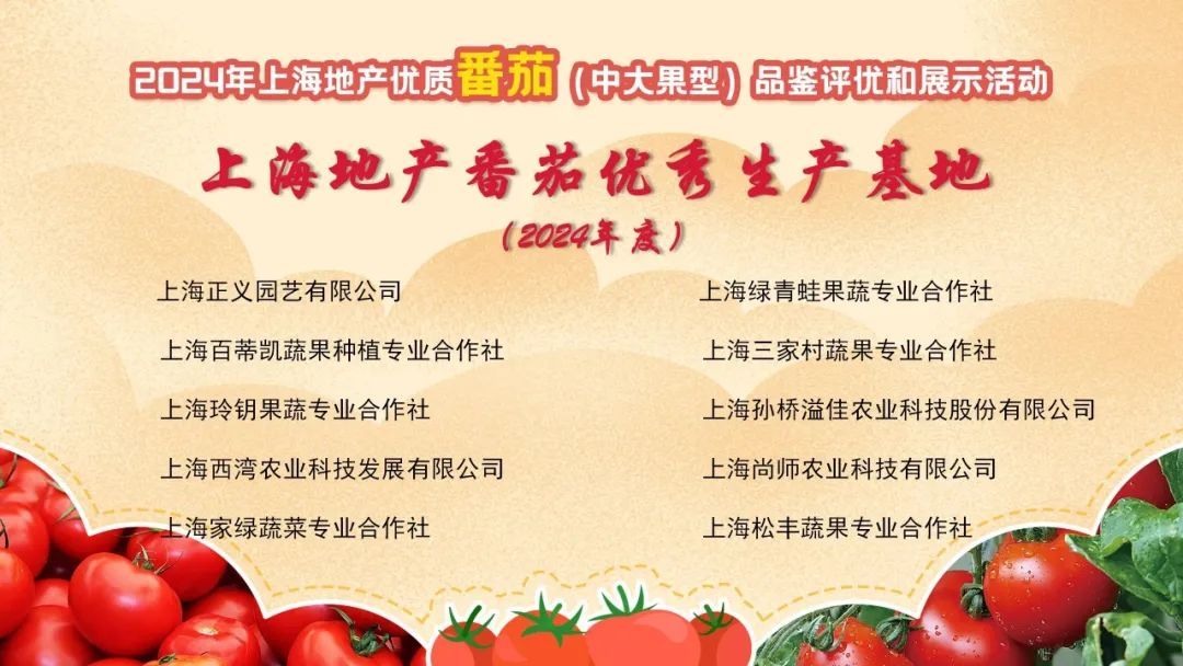 会上,20家生产主体被授予“上海地产番茄优秀生产基地(2024年度)”称号;现场还颁发了2023上海地产优质农产品品鉴评优活动优秀组织奖。