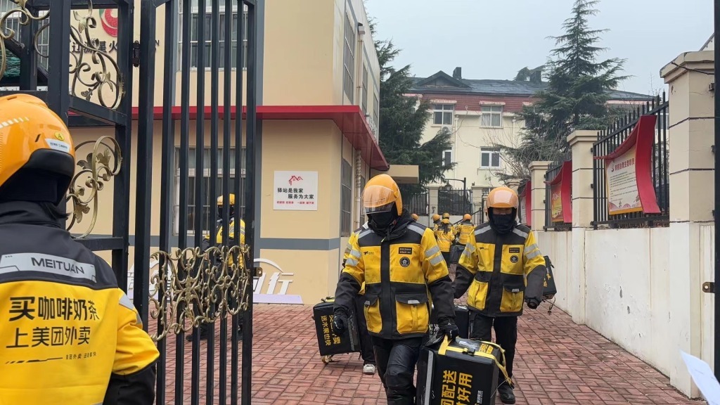 “外卖小哥”整装待发。