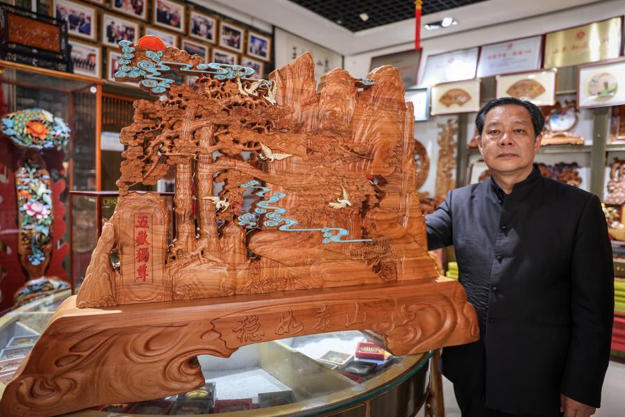 如今,王来新的桃木雕刻产品有20多个系列、4000多个产品,他还成立了研发团队,挖掘市场需求,申请获批600多项著作权和40多项专利。