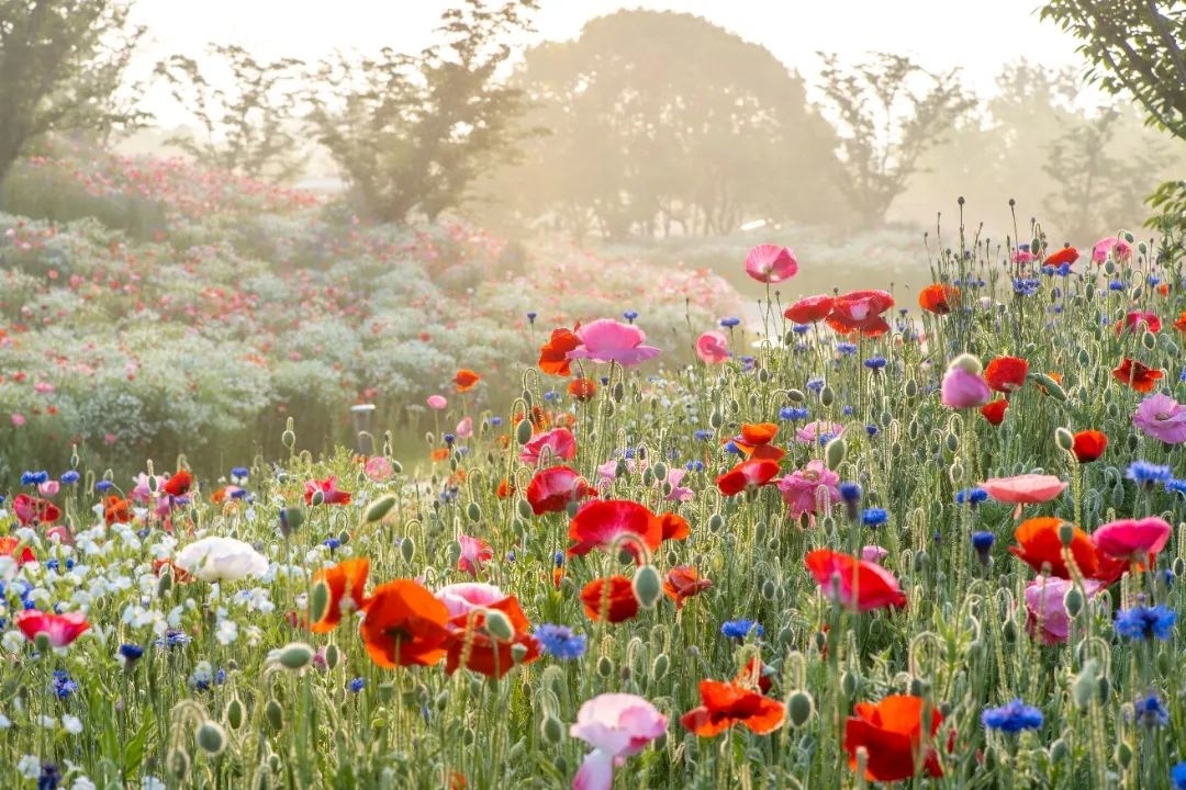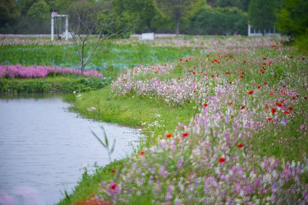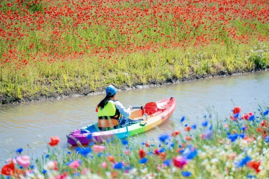 随着100亩虞美人竞相绽放,金山区朱泾镇花开海上生态2024花开海上第七届虞美人文化旅游节正式拉开序幕,不少市民游客闻讯而来,共同感受春的美景和气息。 时值春暖花开季,花开海上生态园相继盛开的多片花海,成为了市民游客的打卡好去处。无论是独自一人还是与亲朋好友同行,都能在这里找到惬意和放松。 眼下,一眼望不到尽头的花田间,大片大片色彩绚丽的虞美人铺就成浪漫的春日花毯,一簇簇花朵在和煦的阳光下泛着有如绢丝般的光泽,微风吹过,轻轻摇曳,炙热又浪漫。“虞美人的最佳观赏期将延续至5月中旬。”花开海上生态园总经理助理杨梅介绍道。 与往年不同,为了让游客有不同的赏花体验,花开海上生态园今年采取混种模式,在芳香花园沿路,除了有成片虞美人,还有矢车菊和满天星等穿插种植,不同花型和色彩搭配在一起,进一步提升了赏花的感官体验。 从观景台向下俯瞰,橙黄、粉红、蓝紫……大地犹如莫奈的调色盘,或浓烈或清雅,描绘出一幅极富冲击力的彩色油画,花海春色尽收眼底。 在花开海上生态园,沉浸式赏花的方式有很多,除了随性而走,还能骑上观光脚踏车徜徉花海小道,或是乘上皮划艇,漾檝于水径间,蜿蜒穿梭,看落花入水,赏花影横斜,别有一番风味。高低错落的山坡、层层叠叠的繁花与波光粼粼的湖面遥相呼应,风光无限好。 眼下,在花海区域,柳穿鱼与喜林草迎来最后一波盛花期,成片花浪随风翻滚,星星点点的小花汇成粉与蓝两片花海,相映成趣,美不胜收。蜜蜂、蝴蝶环绕在花间,采撷甜蜜,吸引了不少游客漫步其中,赏花拍照。据悉,这片梦幻花海花期将持续到五月上旬。 此外,即日起至“五一”期间,花开海上生态园还以生态环保为理念,策划了“虞美人定格计划”“万物生播种计划”“青春劳动唤醒计划”等丰富多彩的活动,游客可参与拍摄虞美人美照换好礼、枫树苗种植、塑料瓶收集玩转有奖游戏等,让游客在赏花的同时,增添不一样的赏玩体验。