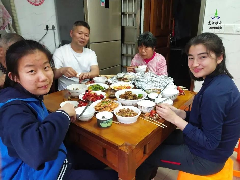 放学后,沪喀同学手拉手到上海同学家里,体验一晚上海生活,上海家庭为他们提供了丰盛的晚餐。