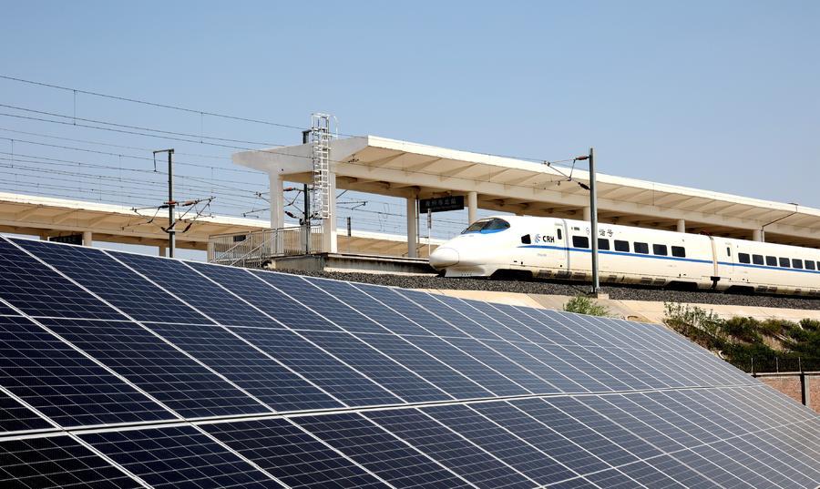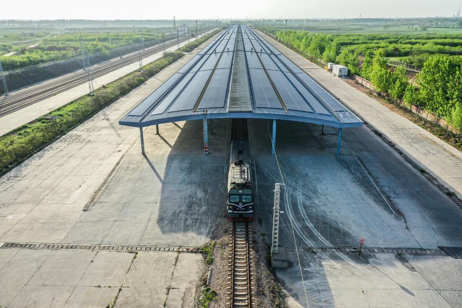 在棚顶面积较大、承重能力较强的沂沭铁路临沭站货场,绿色能源以另一种形式不断产出。2023年4月,临沭货场雨棚棚顶分布式光伏发电项目成功并网发电,这是全省首个既有铁路货场雨棚棚顶光伏发电项目。项目装机容量5.1MW,发电消纳采用“自发自用,余电上网”模式,为临沭货场及区域电网提供绿色清洁能源,预计年发电量637.5万度,按25年运营期计算,预计总发电量可达1.5亿度,可减少二氧化硫、氮氧化物、二氧化碳及烟尘等污染物排放量13.3万吨。在济青高铁青州市北站线路两侧闲置空间同样布设了光伏发电站。该项目装机容量1MW,利用高铁站周边只能绿化无其他用途的综合用地建设,采用“自发自用,余电上网”模式,25年预计总发电量约为3300万度,总收入1650万元。