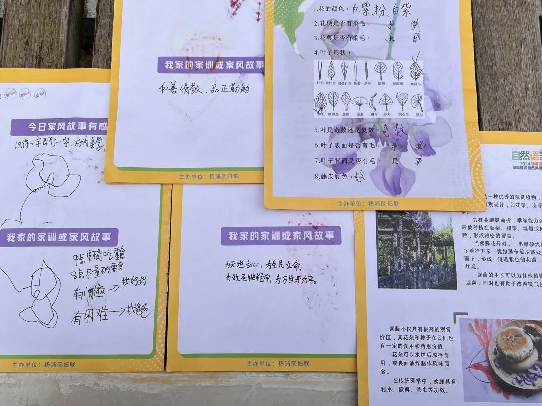 今年以来,区妇联与区绿化市容局携手积极探索实践人民城市重要理念,推出“自然语家”2024年杨浦区亲子家庭公园美育课堂。此次的公园美育课堂,让家风的教诲如同紫藤花般,铺满每个人的心房,让公园美育的温情和家风的智慧在孩子们心中悄然开花。