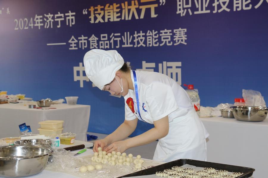 大赛以“‘技’承匠心,‘食’全‘泗’美 ”为主题,设置食品检验、中式糕点两个赛项,现场还通过直播推介、实地展览等形式对泗水县5家代表性食品企业及特色产品,全市14项专项职业能力项目进行了展览展演。