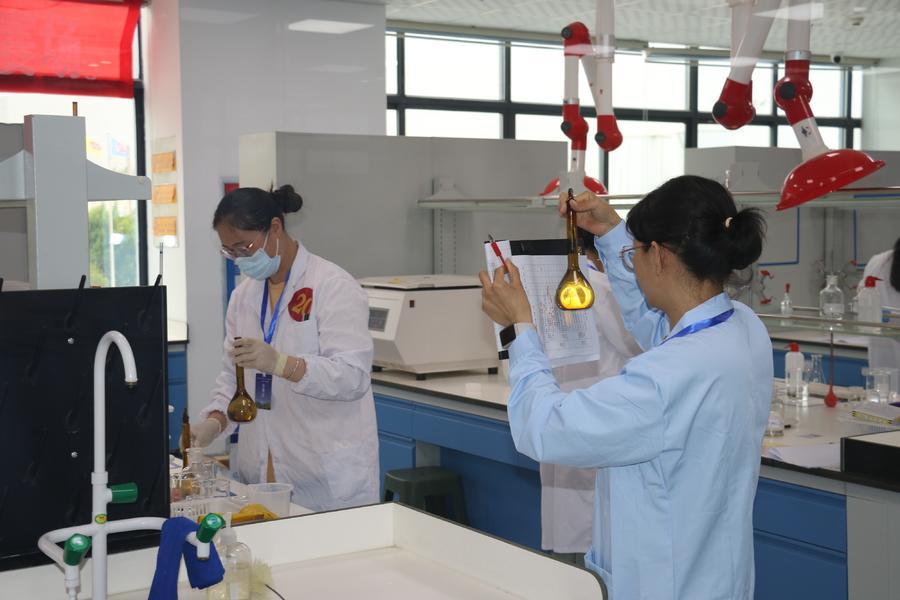 竞赛分理论素养笔试、技能实操比拼。赛场上,各位选手八仙过海,各显神通。中式糕点现场实操中,选手们沉着冷静,发酵、裱花、塑形,一个个面团在他们手中呈现了精彩绝伦的匠心独作。食品检验这边,选手们严谨探究,规范熟练进行实验、检验,展现了钻研业务、崇尚技能的风范。
