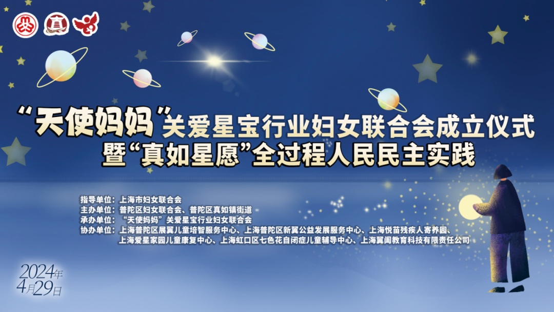 4月29日,“天使妈妈”关爱星宝行业妇女联合会成立仪式在展翼儿童培智服务中心举行。市妇联副主席张庆玲出席并讲话,普陀区副区长王珏出席会议。普陀区妇联、真如镇街道领导以及“天使妈妈”关爱星宝行业妇联和共建单位代表共同参与。