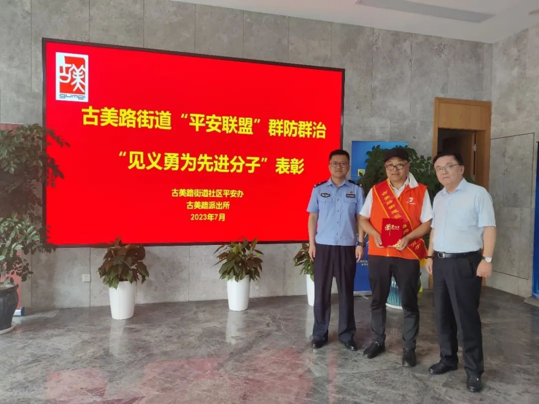 为了保障居民安全,勇于直面危险,对于老朱来说不是第一次。2023年5月,有两名犯罪嫌疑人尾随居民混进小区,欲实施盗窃行为。老朱在得知消息后第一时间带领保安赶到并控制了现场,等待民警抓捕。后来,民警迅速在小区内制服了这两名当日流窜来沪作案的犯罪嫌疑人,并当场查获了作案工具。“不害怕是假的,但我是负责人,应该冲在前面。”老朱说。当年7月,古美路街道社区平安办、派出所召开表彰会,给予老朱“见义勇为先进分子”称号。受到表彰的他受宠若惊,他说:“当时,我们几个保安也都跟着我,非常勇敢,我觉得这个荣誉是属于大家的。”虽然已经58岁,但老朱仍然事事亲为。在恶劣天气来临前,居民总能看到老朱活跃在小区各处:提前巡视做好隐患排查,及时调配值班人员,遇到危险积极应对……“不是说不放心他们的工作,但我自己还是要检查一遍,确认没问题。”工程出身的老朱特别注重细节,他用细致入微的服务传递着真诚和用心,得到众多居民的好评。有次遇到台风天气,一棵树木倾倒,意外撞倒了小区隔壁排污站的围墙,物业赶紧向居委会和街道上报。“我跟着你一起!”老朱主动请缨,陪同工作人员连夜排查树木隐患。从当天晚上到第二天下午,他们发现7、8棵树木已经被风刮得倾斜,所幸及时清理了隐患树木,守护了小区安全。