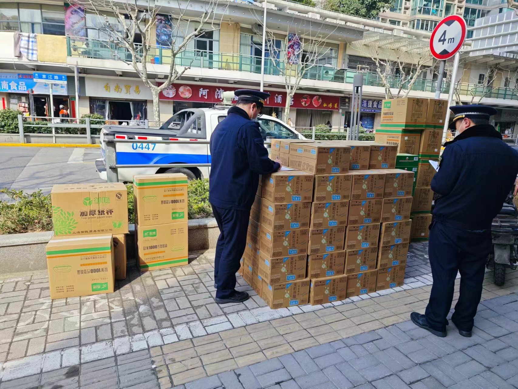执法行动中,城管中队重点对占道经营的流动摊档进行整治暂扣,对商铺门前堆放物品和占道经营开具法律文书。经过整治,辖区内占道经营情况得到较大改善,并采取多班次值守防止类似现象反弹。