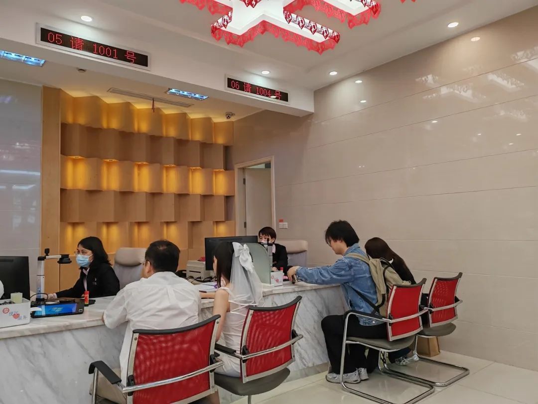 今天(5月1日),长宁区民政局婚姻登记处格外热闹,不少新人选择在劳动节当天登记结婚,定格这个特别的幸福瞬间。 上午九点不到,长宁区民政局婚姻登记处的门口就已有新人在等候。“今天是劳动节,日子很特别,而且也是假期第一天,时间比较宽裕。”穿着小礼服、戴着头纱的唐女士挽着爱人的手,笑容灿烂。今天,他们是长宁区第一对领证的新婚夫妻。 走进明亮温馨的登记大厅,一对对新人盛装出席,脸上洋溢着满满的幸福感。“平时工作比较忙,了解到“五一”假期还可以来领证,我们马上就预约了。”田女士和爱人都在长宁工作,相恋4年的他们在网上看到长宁区民政局婚姻登记处的颁证大厅,“觉得这里很漂亮,所以特意跨区过来领证。” 办理登记大约15分钟后,新人们就可以从工作人员手中接过“新鲜出炉”的结婚证了。今天,工作人员还额外附赠了一件新婚礼物——手机支架。工作人员告诉记者,今天是这份礼物亮相的第一天。“过去我们也会送一些捧花、生肖玩偶之类的礼物,近期经过向市民调研,了解到现在的年轻人更讲求实用,所以我们选择了手机支架作为新人们的礼物。” 领证结束后,唐女士和爱人还来到了附近的绿地上拍摄婚纱照。婚姻登记处附近的绿地景观清新优美,是许多新人就近拍摄照片的热门选择。 为倡导科学生育、营造幸福家庭,领证现场还有来自长宁区妇幼保健院的医生为新人们带来婚育知识以及相关政策的咨询讲解服务。 据统计,今天共有38对新人在长宁领证。记者从长宁区民政局婚姻登记处了解到,开放的40对预约名额全部约满,不过与往年的“五一”假期领证小高峰相比稍有减少。一方面,许多人趁着小长假出游,另一方面,五月份具有特殊意义的好日子较多,也有不少新人选择错峰登记。 部分图片来源于区民政局 撰稿/摄影:谭奕茂 编辑:程 前 责编:王 博 *转载请注明来源于“上海长宁”