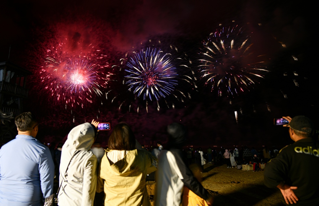 5月2日晚,2024上海湾区·金山城市沙滩国际音乐烟花秀首日活动顺利举行。 千米堤坝齐燃绚烂花火,深蓝海域倒映明彩星辰。众多市民游客到此,看璀璨繁花落进人间五月天,收获了一场难忘的旅行。 随着舒缓的音乐响起,数十道紫光、黄光、红光从远处一公里的海岸线上一跃而起,“嘭”的一声在夜空中散开,漫天烟花瞬间点亮城市沙滩的夜空。 今年的烟花秀分为两场,首先上演的是中国和比利时专场。5月4日将上演巴西和马来西亚专场。