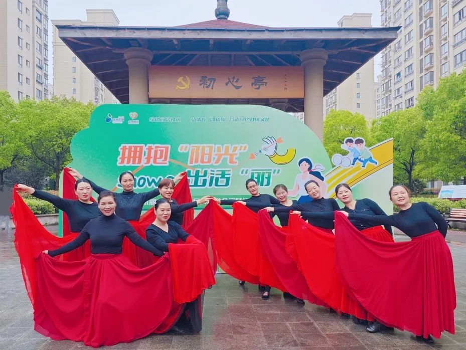 小区居民组成的舞动逐“丽”舞蹈队带来开场舞《不忘初心》。