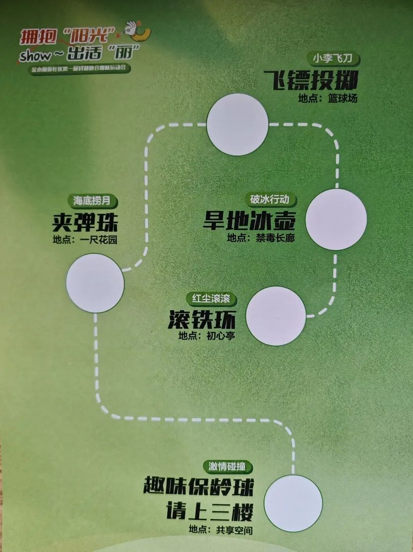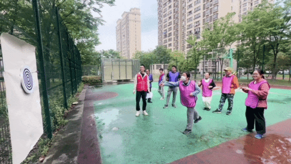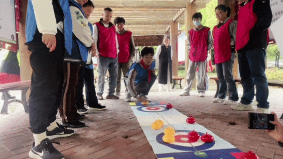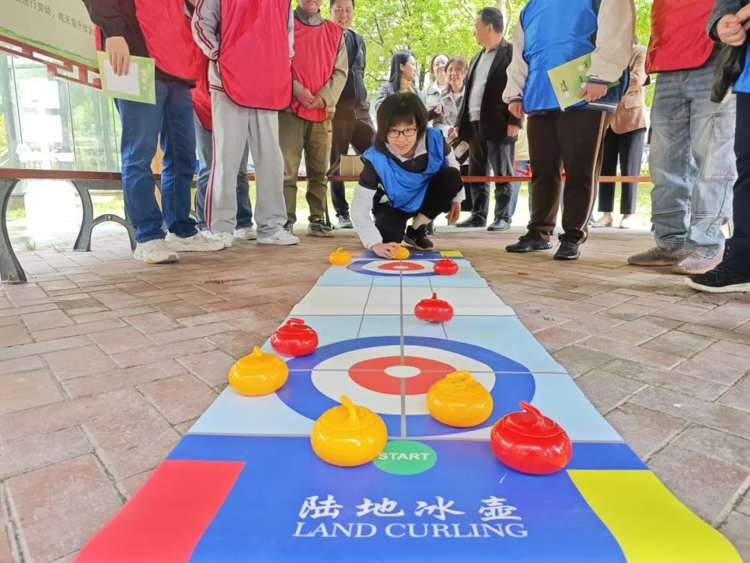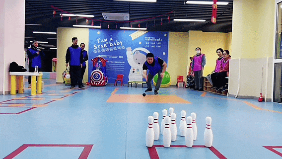 活动现场,设置了“旱地冰壶”“飞镖投掷”“趣味保龄球”“滚铁环”“夹弹珠”共5项集趣味性、协作性、竞赛性为一体的比赛项目。