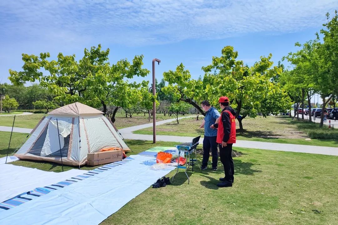 在这里,“公园管家”志愿者们正忙碌着,他们身着“红马甲”,穿梭在人群中,为游客提供咨询、帮助和指引。停车引导、解答疑问、处理突发情况……志愿者们都表现得十分专业且热情,时刻温馨提醒着游客们要保护环境、无痕露营。