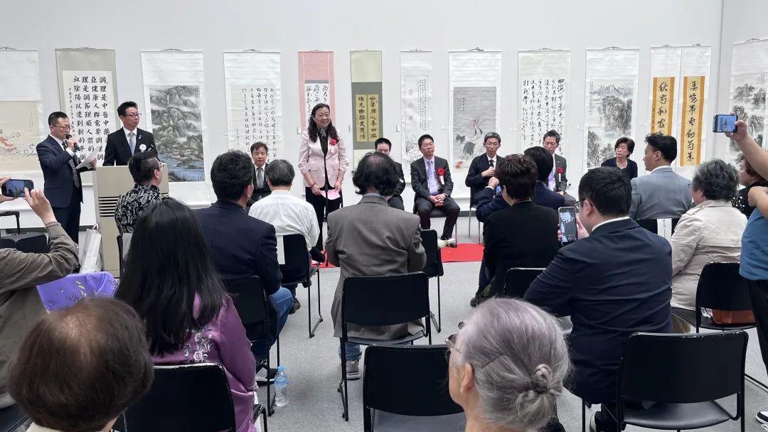 中国驻名古屋副歌总领事季文斌、领事张林曦,名古屋市观光文化交流局远藤刚部长,名古屋市国际交流担当山田牧男课长,日中书画篆刻交流会胡永华会长,中部日本书道会名誉顾问后藤汀莺和上海市徐汇区书画协会陈峨会长为展览会开幕式剪彩。