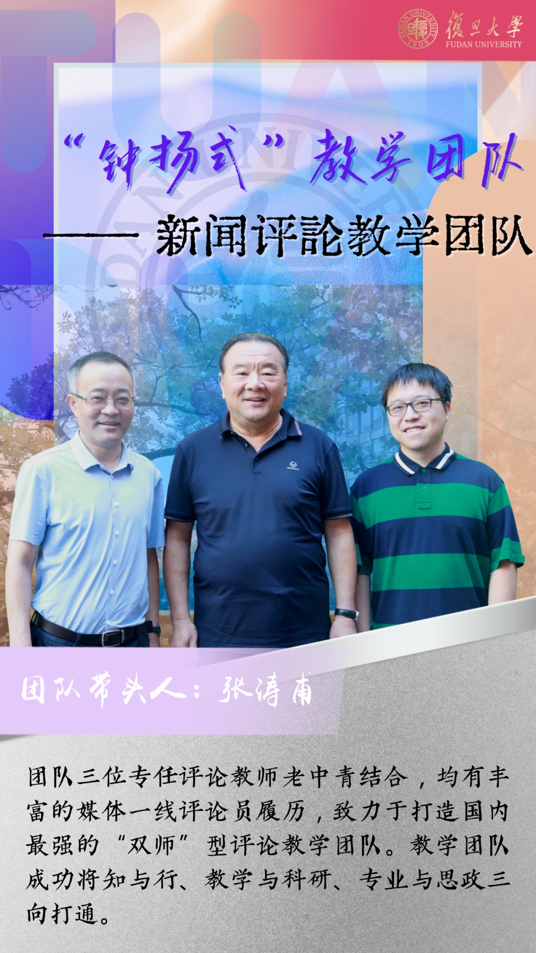 “新闻评论”课程团队的主干,是恰好涵括了老、中、青三代的三位教师。作为“90后”青年教师,翁之颢在团队中受益匪浅。