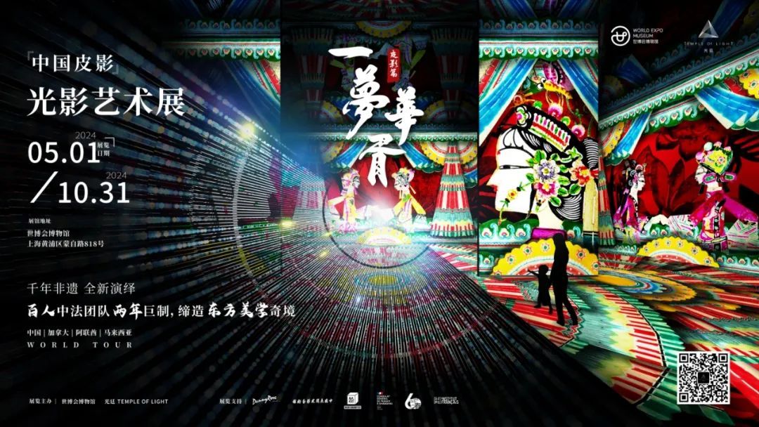 《一梦华胥——中国皮影光影艺术展》于2024年5月1日在世博会博物馆(北大厅及临展厅2-3)拉开帷幕。光廷Temple of Light携手全球顶尖多媒体艺术工作室Danny Rose,以入选联合国教科文人类非物质文化遗产名录的中国皮影戏为创作蓝本进行数字化二次创作,为世界观众打造了一个汲取中国皮影美学精髓的沉浸式光影异想世界。