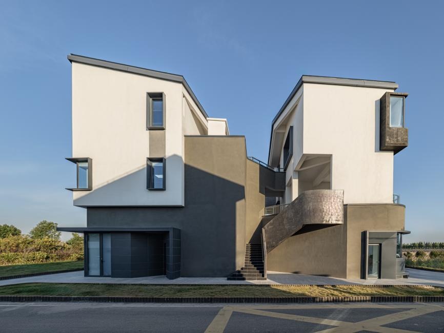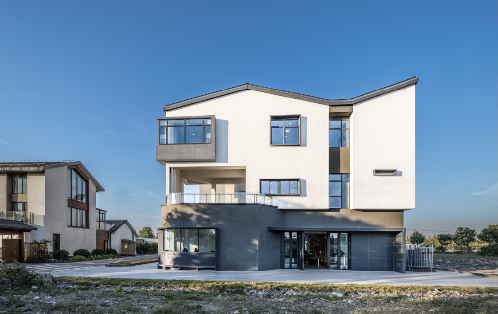 建筑语言运用江南水乡传统元素,黛色坡屋顶、青灰色墙面,质朴的材质纹理......建筑外观讲求在地性,传统中兼具现代创意。