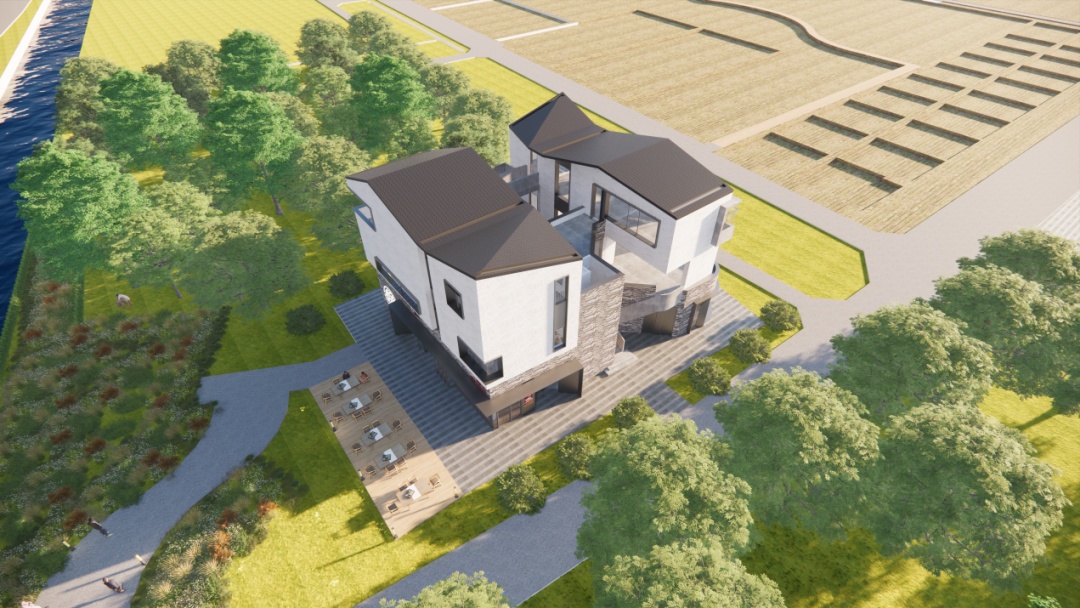 兴达村村民活动中心位于三十三亩生态林地旁,依傍在顷顷绿色稻田边。在有限的用地范围中,最大程度地利用土地面积,在场地南侧与北侧生成主要建筑体量,同时开放首层空间,提升建筑的公共性与可达性。