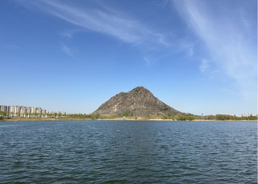 曾经的华不注山,经过几年的建设开发,已变成集旅游、休闲、商业、配套为一体的华山历史文化湿地公园。从南门进入步行近十分钟,华山的全貌便映入眼帘,只见华山湖中间平地突起一峰,远望像一朵含苞待放的荷花。这也就不难理解为何山名“华不注”通常被认为是“花骨朵”的谐音。其山名最早来源于《诗经》中的《小雅·棠棣》,同样意为此山如花跗注于水中。