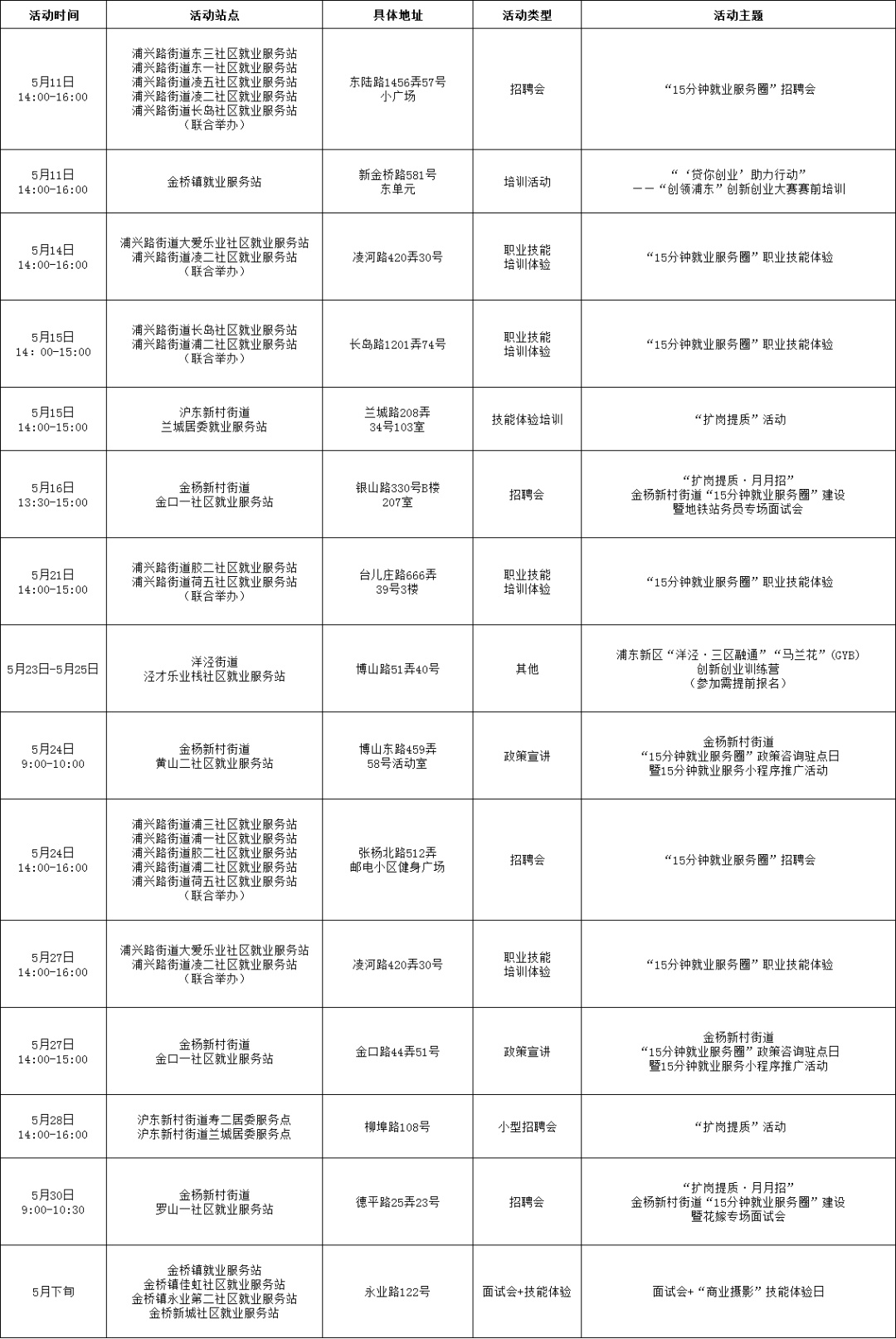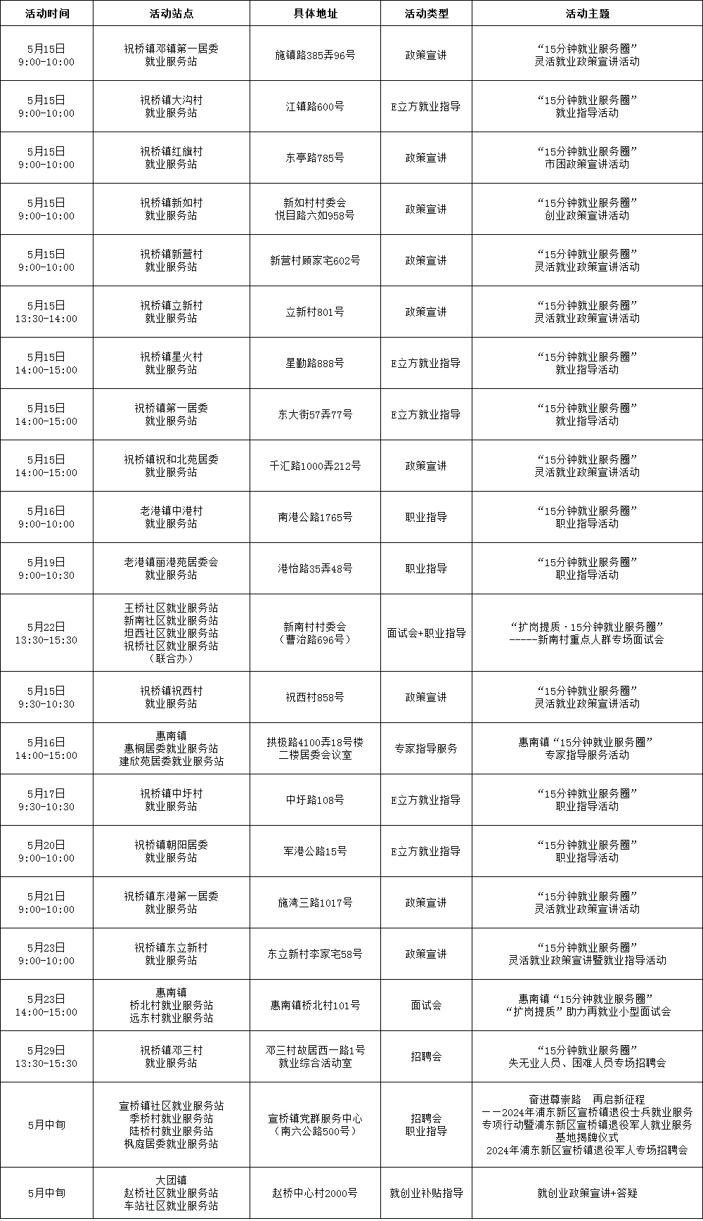 ·浦东新区街镇就业服务站点活动·