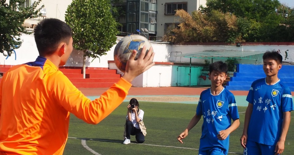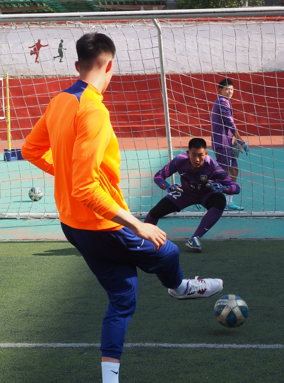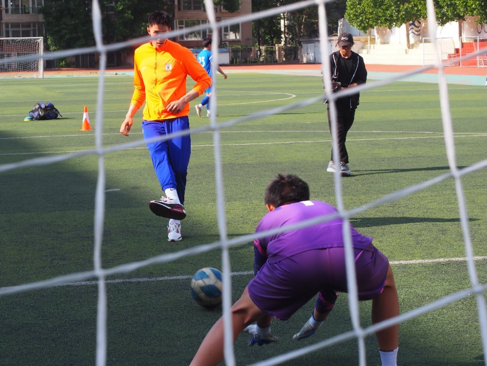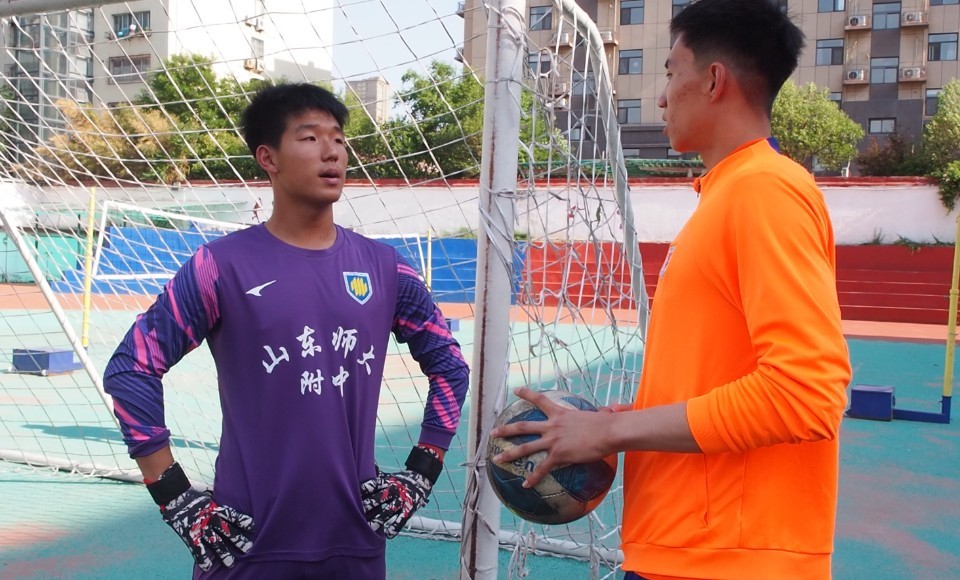 史松宸、于金永等四名职业运动员,给山师附中的足球小队员们带来了专业的守门员、后卫防守、传接球等训练课。