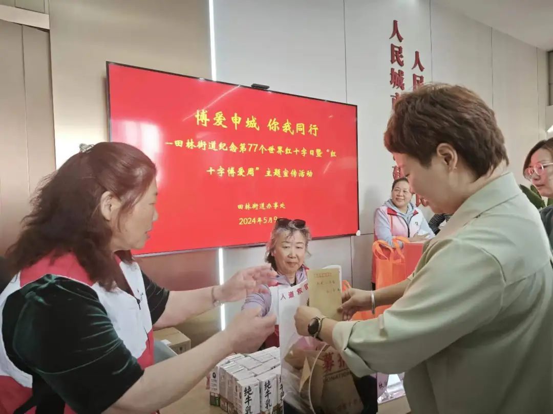 “红十字博爱周”期间,田林街道还会以丰富多元的形式深化宣传教育,通过张贴宣传海报、播放专题宣传片等媒介手段,广泛传播红十字理念;策划“生命的通道”参访活动,开展血压计免费检测服务、专业介护知识普及讲座等一系列公益活动,进一步推动红十字精神深入人心。