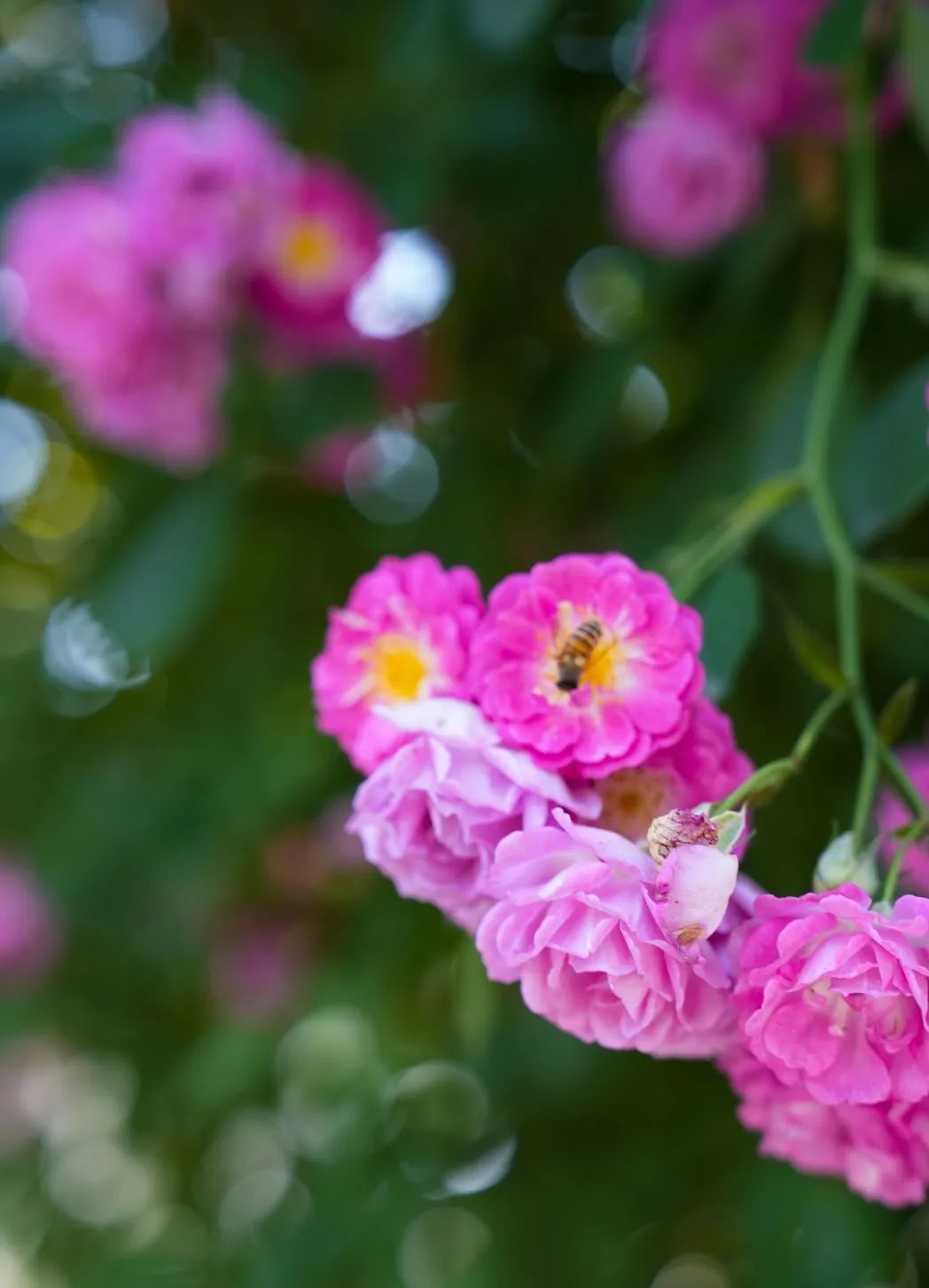贴近绵延开来的“花墙”,能闻到沁人心脾的淡淡花香,吸引来蜂飞蝶舞。此时此刻,以“花墙”为背景,自己为前景,随手一拍,超出片。
