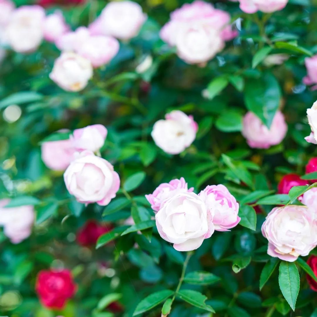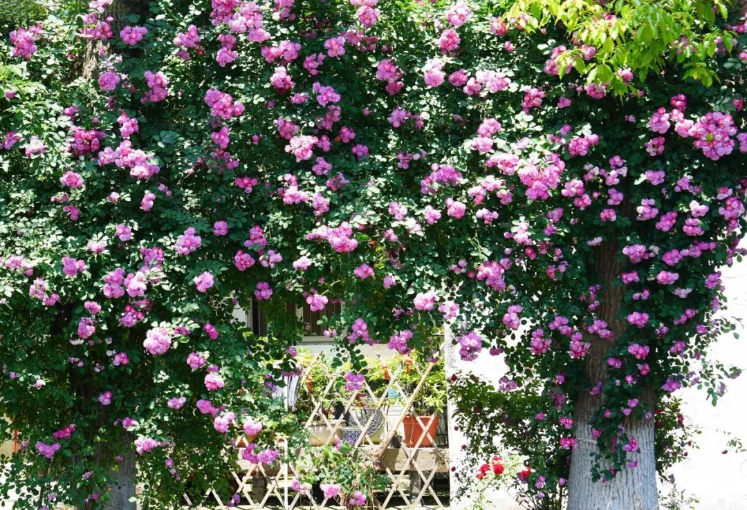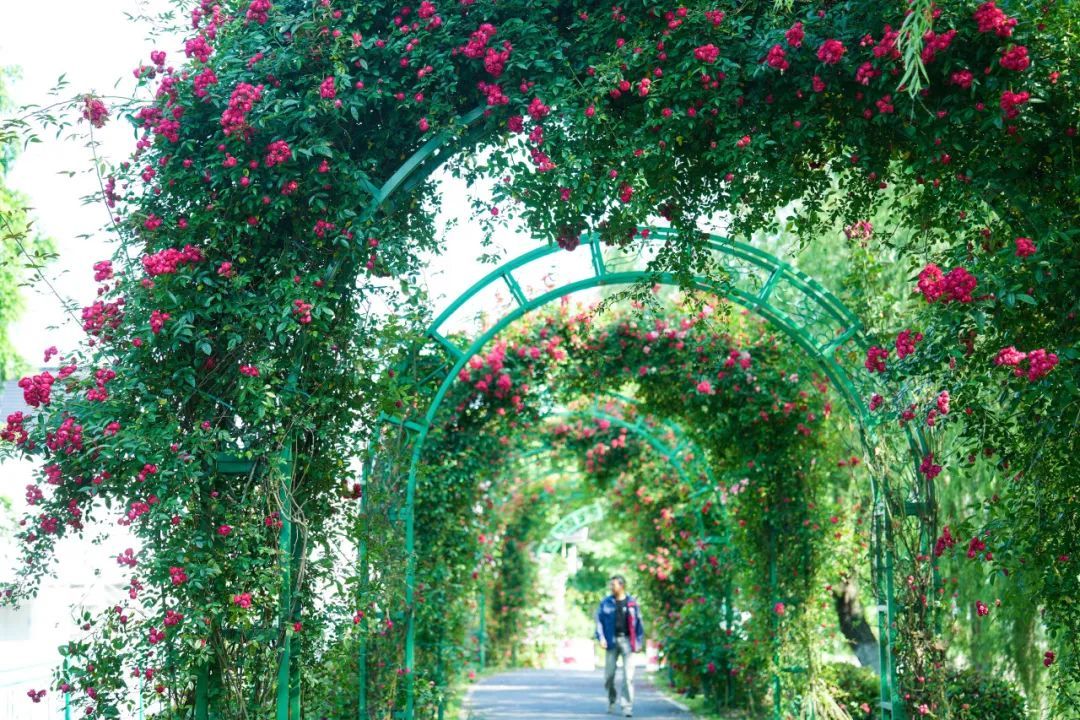 蔷薇、月季等竞相绽放,