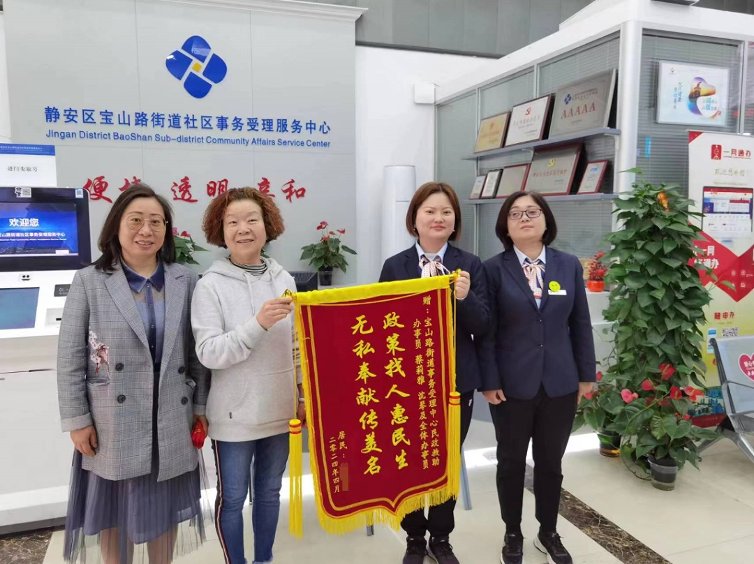 如此雪中送炭,大大缓解了江阿姨家的经济压力。今年“五一”劳动节期间,江阿婆儿媳特意到宝山路街道社区事务受理服务中心,向工作人员送上锦旗,以表感谢之情。
