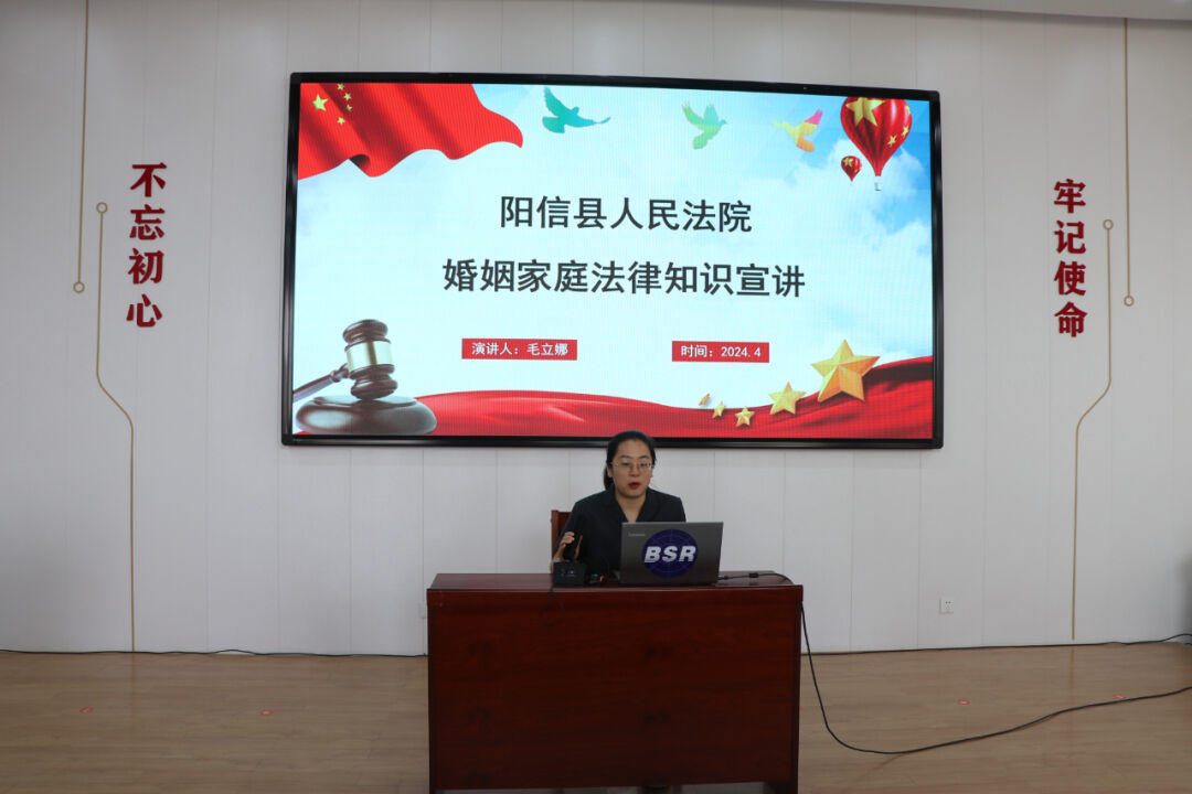 仪式后,阳信县各乡镇(街道)妇联主席、司法所长,商店镇各村妇联“法律明白人”及部分妇女群众60余人参加首场培训。阳信县人民法院四级法官助理毛丽娜围绕“婚姻中的法律知识”,阳信县法律援助中心主任刘宁宁围绕“中华人民共和国法律援助法”深入解读相关法律法规,参训人员还一起观看了《不再沉默》、《七彩守护》、《守未》等普法教育微电影。