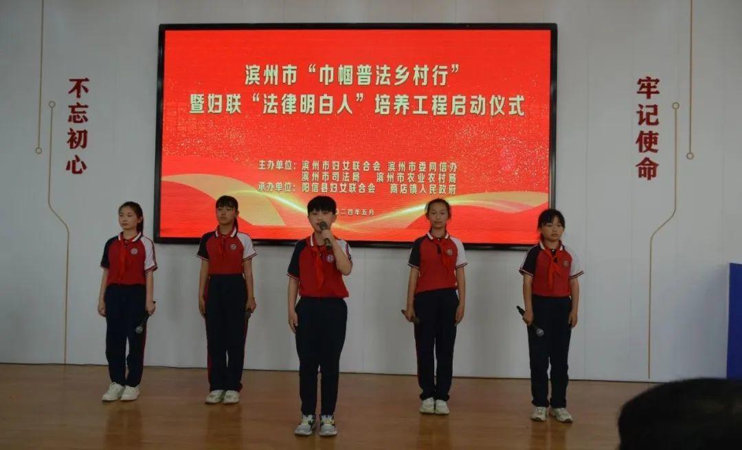 活动现场,向阳信县“巾帼普法乡村行”志愿服务队授旗,向阳信县“巾帼普法乡村行”宣讲团成员颁发聘书,向“小小普法宣传员”赠送普法书籍。活动中,阳信县“巾帼普法乡村行”宣讲团成员代表作了发言,“小小普法宣传员”通过自编自演的普法节目展示学法成果。