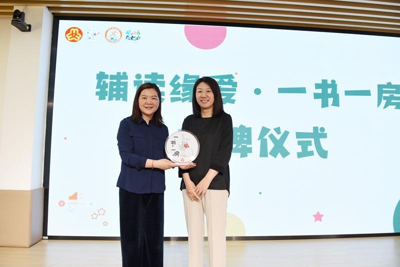 区妇联副主席袁文慧为“辅读缘爱·一书一房”授牌。