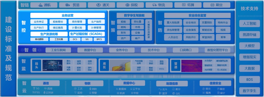 山东港口一体化改革以来,山东港口青岛港始终高度重视智慧绿色港口建设。针对液体散货板块点多、线长、面广的管理现状,联合山东港口科技集团,以加快发展“新质生产力”和确保“高水平安全”为核心目标,贯彻落实“全面突破年”各项任务,强力突破液体散货智能化建设整体性、系统性难题,因地制宜打造“工业互联网+全景智能”液体散货数智安全一体化管控平台,推出“油智未来”解决方案,为行业提供全面的智慧绿色港口升级路径。