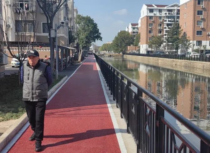 春日午后,这条河景跑道是小区老人们每日散步的“打卡地”。从原本沿河的水泥路升级为可散步、可运动、可遛娃的全新场景,令人眼前一亮。一眼望去,红色的塑胶跑道路面平整、色彩鲜亮,具有缓冲、防滑功能,可以保障居民运动的安全和舒适。