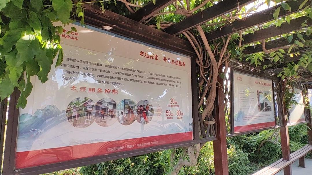 夯实村级阵地,激发“用信”之力。结合村庄实际,在不改变原有阵地建设的情况下,将村委会、文化广场等改升级造成村级信用办公室、信用主题文化广场,打造信用长廊1处。通过常态化开展信用积分公示、信用模范评比、兑换奖励活动,进一步强化信用有价、守信受益的鲜明导向。