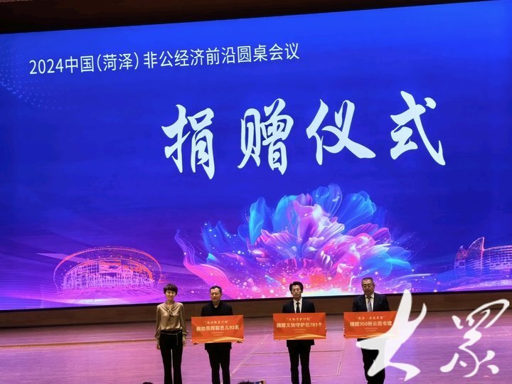 5月16日上午,在2024中国(菏泽)非公经济前沿圆桌会议上,中华思源工程基金会,进行“思源·云图书馆”“文物守护计划”“思源微笑行动菏泽义诊行”三个项目的捐赠,总价值1100万元。