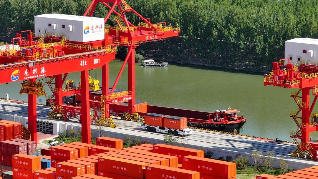 三年前,济宁港航龙拱港还是一个装卸传统散货的小港口,而今,龙拱港已成为北方自动化程度最高的集装箱内河港口。龙拱港建成投用了自动化岸桥、全自动化场桥和无人集卡系统。5月15日,记者走进龙拱港,拍下这个智慧化港口的新映像。