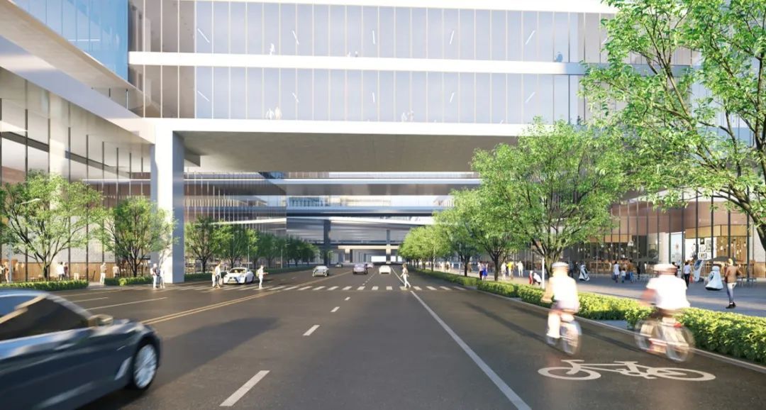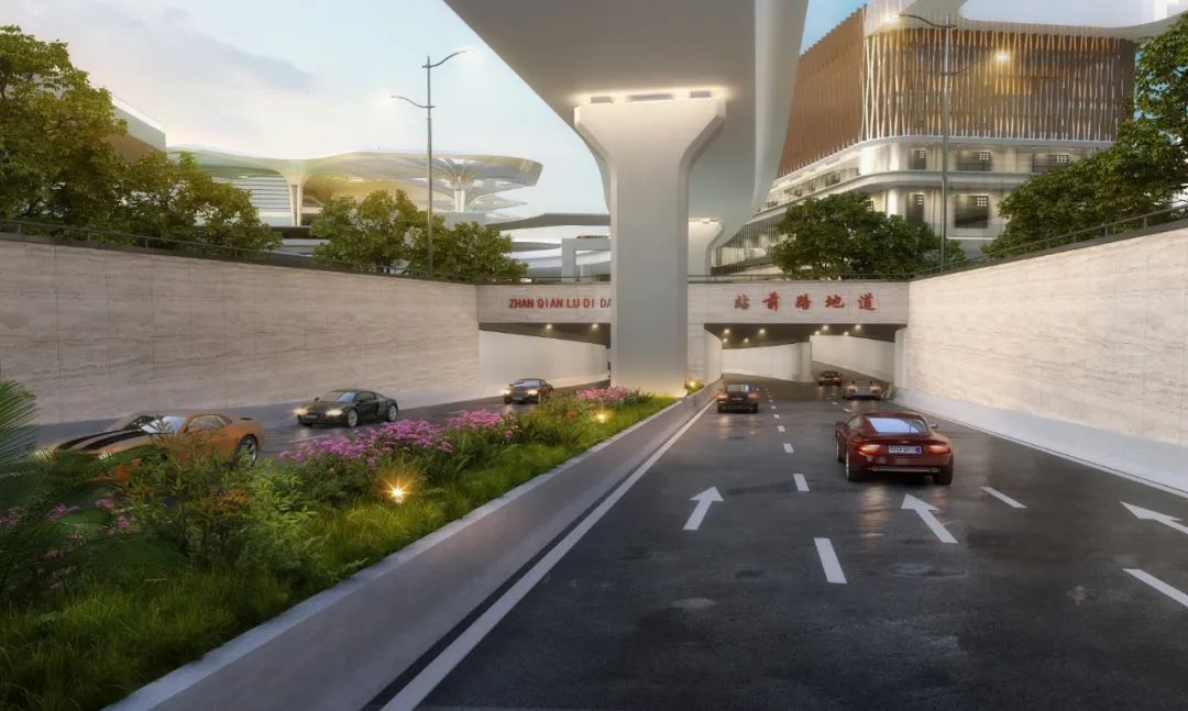 下穿地道的立面材质和绿化设计与东方枢纽整体风貌相一致。