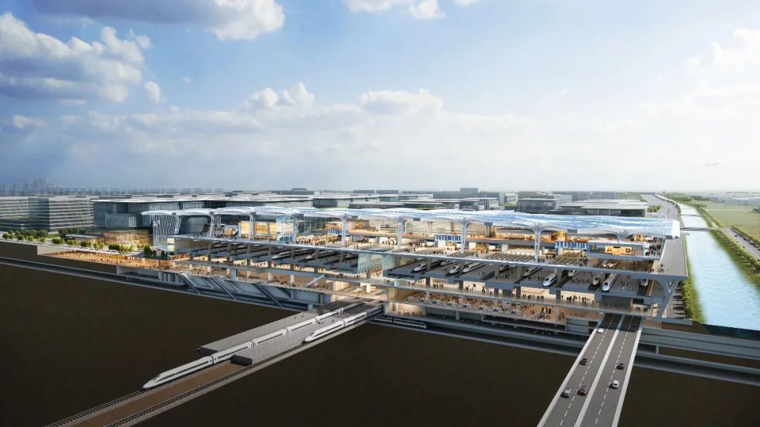 高架桥面的风格和色调与东方枢纽整体风貌相融合。