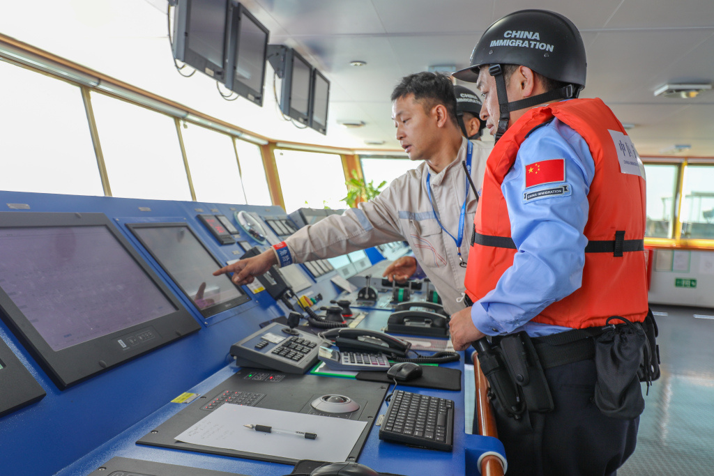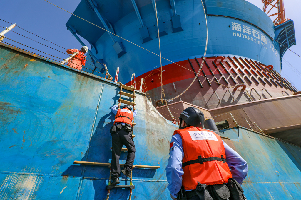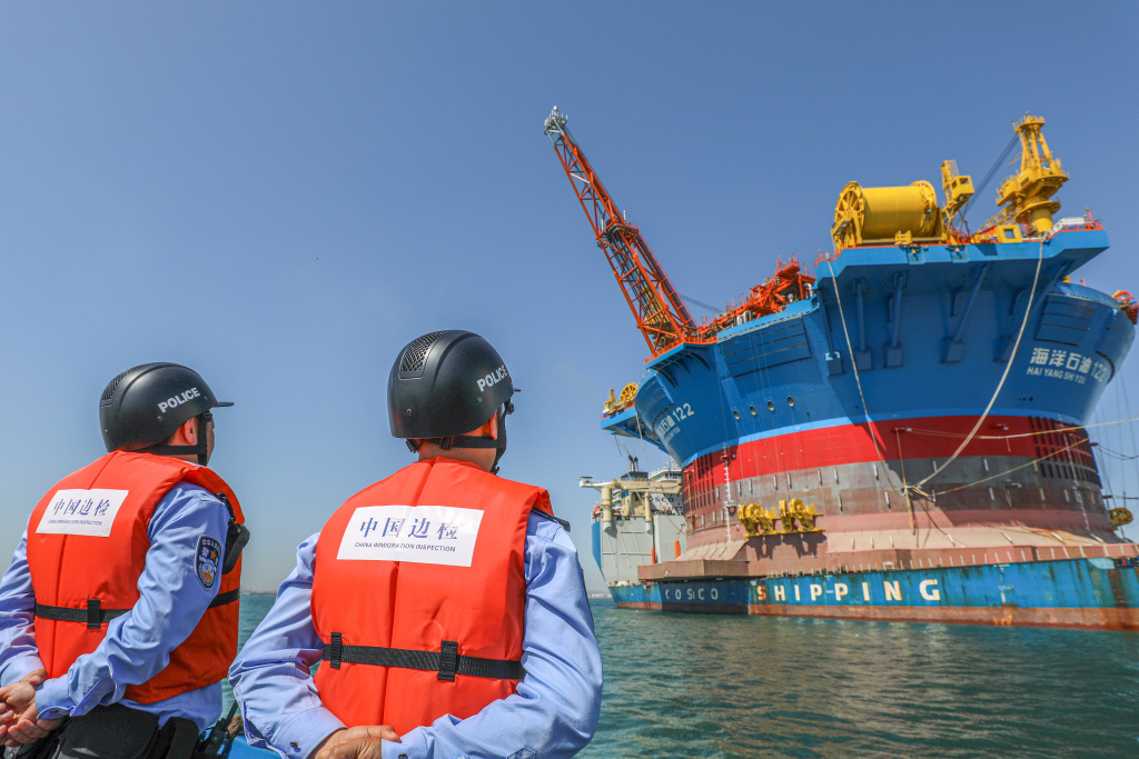 为确保“海葵一号”顺利完成装船固定作业,黄岛边检站提前摸排载运船舶信息,第一时间与企业进行沟通对接,为登轮作业人员开通“绿色通道”,同时加大海上巡查力度,助力“大国重器”安全顺利驶往深蓝。