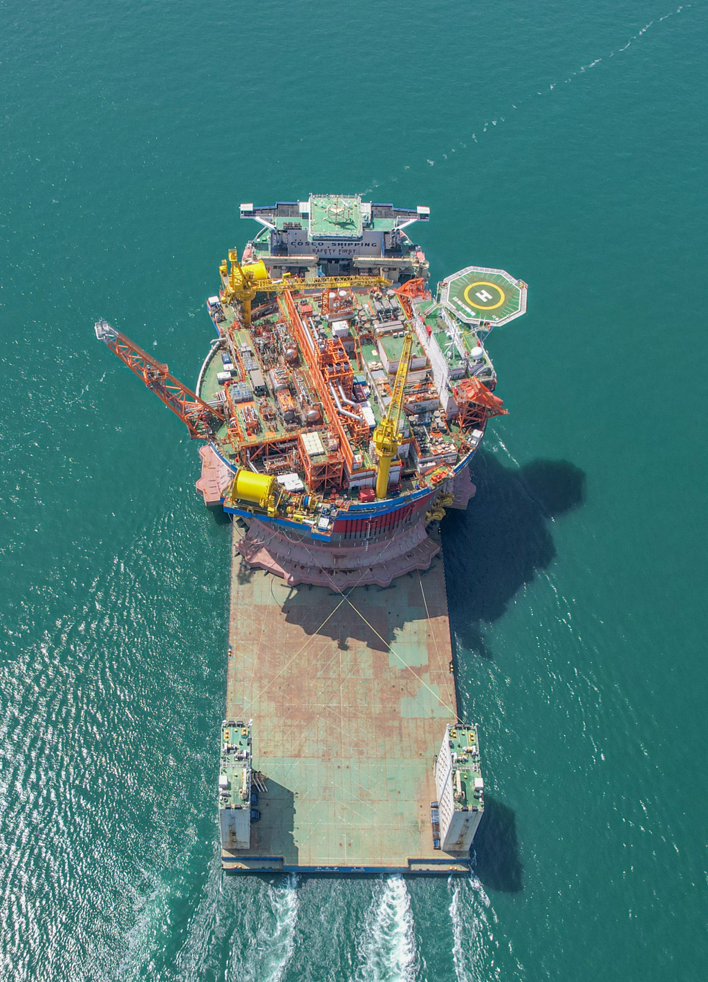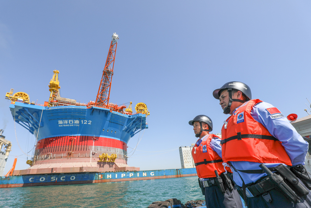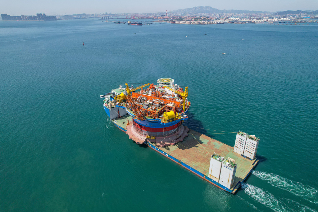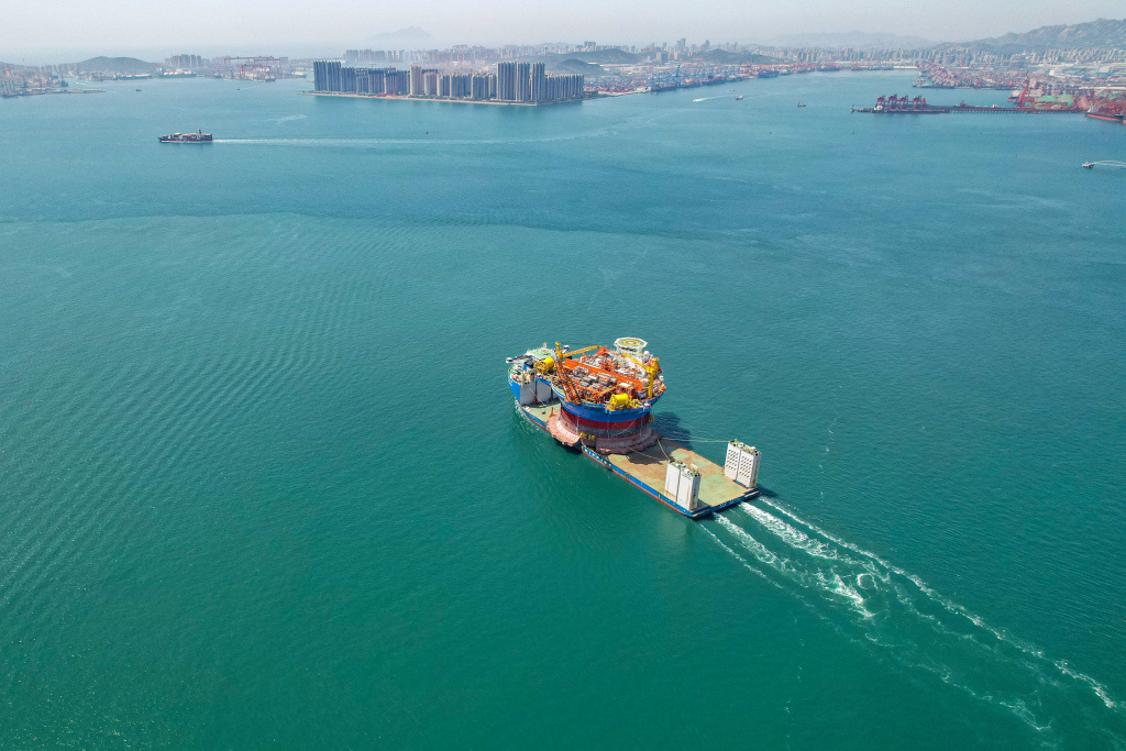 5月16日,亚洲首艘圆筒型浮式生产储卸油装置“海葵一号”完成装船固定作业,在黄岛边检站的保障下搭乘中国香港籍“新光华号”半潜船驶离青岛胶州湾,运往珠江口盆地,航行距离将超过1200海里。