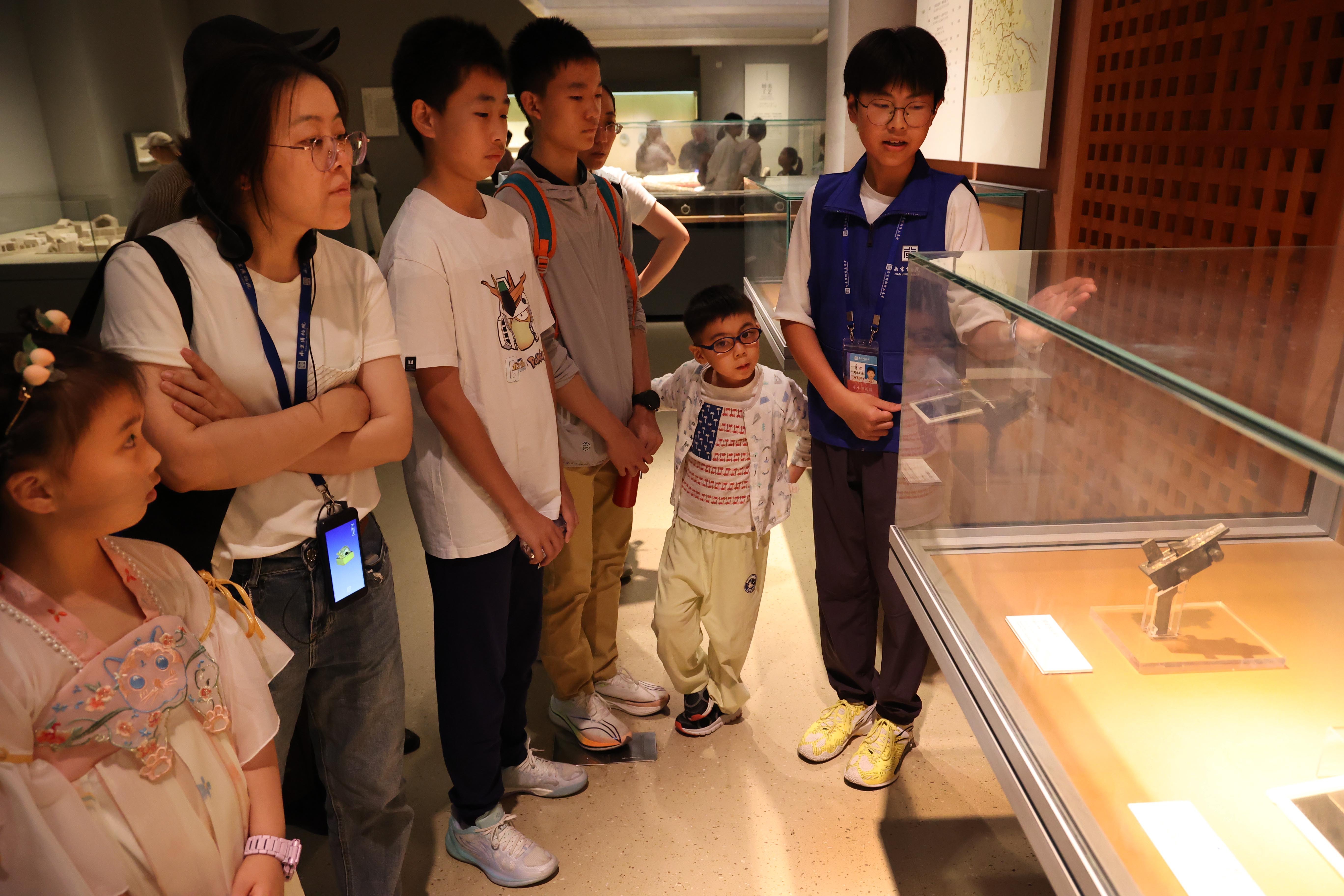 “这件战国时期的青铜错金银立鸟几何纹壶,1965年出土于涟水三里墩出土。盖钮上立一飞鸟,盖周与足下均立三飞鸟,通体错银并镶嵌绿松石……”在南博历史馆,“小小南博蓝”志愿者鲁栩安正在为观众介绍一件珍贵的战国青铜器。今年的南博奇妙夜推出了“小小南博蓝讲文物”活动,小志愿者们站在历史馆、特展馆多件重要文物前,为观众提供导览服务,用充满童趣的语言来解说文物,也契合了今年国际博物馆日“博物馆致力于教育和研究”的主题。
